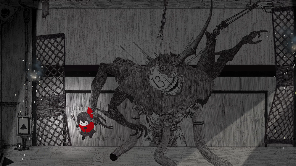赤いリボンの少女『ヒノ』と、白い『もにもにスケルトン』は、